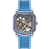 LIMITED EDITION OF 10 PIECES The Maestro 8.0 Squelette Gem-Set Sapphires features 66 Turquoise Sapphire stones 3.12 ct. of the highest purity, set by hand into an 18K white gold bezel by highly skilled artisans. The case is in medical grade stainless steel, while the ice blue vulcanised rubber strap matches the colour of the precious gem.