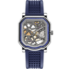 LIMITED EDITION OF 10 PIECES The Maestro 8.0 Squelette Gem-Set Sapphires features 66 baguette-cut stones of the highest purity set by hand into an 18K white gold bezel. The case is in medical grade stainless steel, while the vulcanised rubber strap matches the colour of the precious gem.